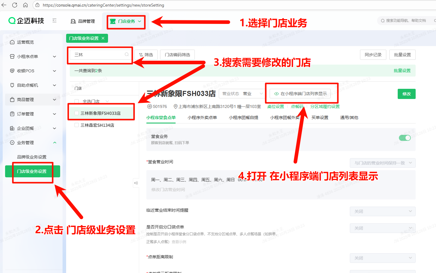 修改门店营业时间